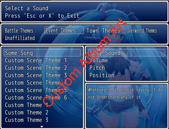 • You can call the scene at anytime by using the following in a script call: SceneManager.call(Scene_SoundTest)