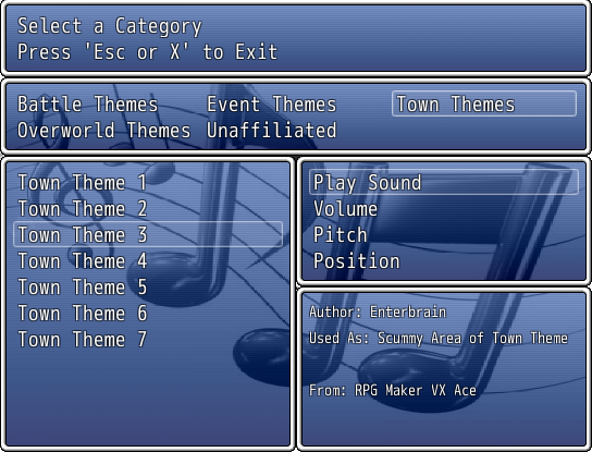 Wow, finally a customisable sound test. All it's missing is a script call and menu command/sounds disable...