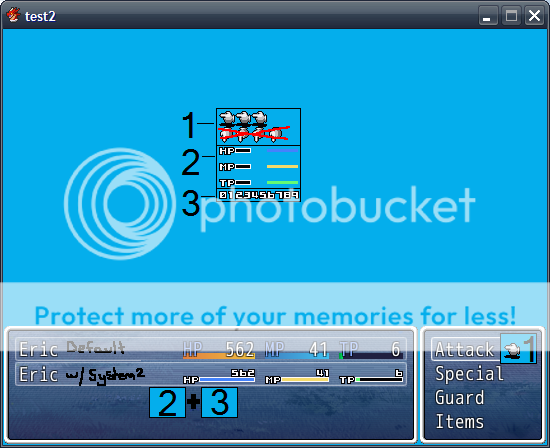 • Use of "System 2" or "System 2 like" image to change HP/MP bar appearance.