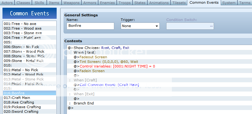 Also, using a simple revive system to make the game more challenging, in a sense. If your actors fall in battle, they won't come back until after the battle. No revival items or anything of the like.