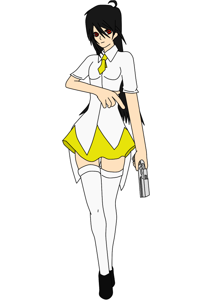 Leon is the splitting image of Noel Vermillion. Leon is a young girl with long back length black hair and red eyes. She wears and the standard uniform for the Sophomore year. A black blazer is added with an armband saying Public Relations Division when she's required to do so by the Student Council.