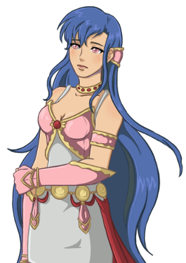 First of all, blue hair. Not sure how you guys feel about that, so I'd like to get some opinions on this one. She originally had blue hair when I first created her for a FE hack project, and we went back to it because it looks neat with the pink armor. Her armor is also noticeably more fancy, to accommodate her knightly status.