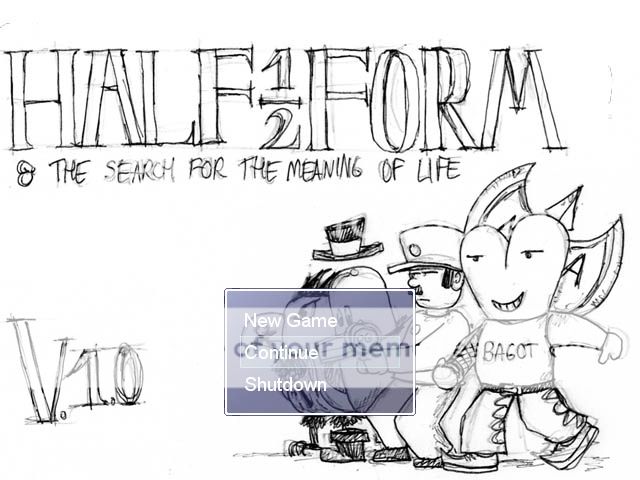 Story: You are a bloke, Half-Form, who lives in a country called Holend. No one in said country has a meaning in life, so you and a bunch of freinds (the usual buch of RPG freaks) have decided to leave. Of course this is against the law, and so you've got to kill those who get in your way. that's basicaly it. It does have a slightly branching storyline, with all sorts of secrets for those who think lateraly (or at all :p) and it's not super easy either. I recon it's fun, and my mates have a laugh with it so you too may enjoy it.