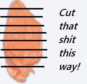 if you think some of the strips cut from the thicker part of the chicken breast are too wide just split em.