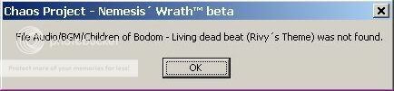 I don't know if everyone has the exact same demo, but I also got that error for Living dead beat. All I did was went into the material base, made sure that song was actually in there (which it was), then I went into the event (EV007) and editted it (basically I just went to @> Change Battle BGM, edit...and the song was already highlighted, so I pressed okay, applied it, then tried the demo again and it worked just fine). I didn't change the song or anything, and now the original song plays when I get to that point in the game. I'm guessing it was just a name error.