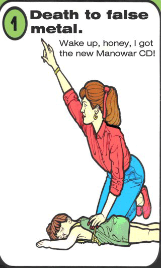 I got kicked out of class today, reason we read a story and when I had to read the definition page...."Man-o-war" was the second word, meaning "worship" I yelled "Manowar, great band" and I guess he got ticked off...lame.