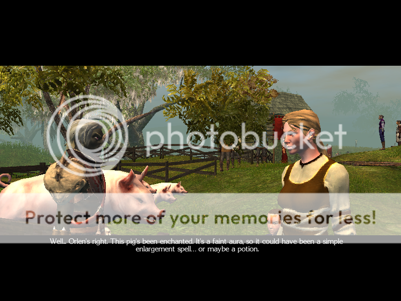 This is precisely what I'm talking about when I mention the sheer amount of decisions you are faced with in the game's dialogue.  Here, you are presented with a moral dilemma.  A greedy farmer has entered a pig in a contest, and enchanted it with an Enlargement spell to ensure that he wins the contest.  Will you dispel the enlargement, revealing the cheating farmer and humiliating him in front of everyone at the fair?  Or will you confront the farmer and try to persuade him to drop out of the contest before he is found out?  If he refuses, should you dispel the pig's enchantment anyway?  Or maybe you just feel that the whole ordeal is nothing of your business, and you don't find it necessary to do anything about it.  The decisions you make directly affect your Alignment, and also influence the way other characters perceive you.  NEAT, HUH?!