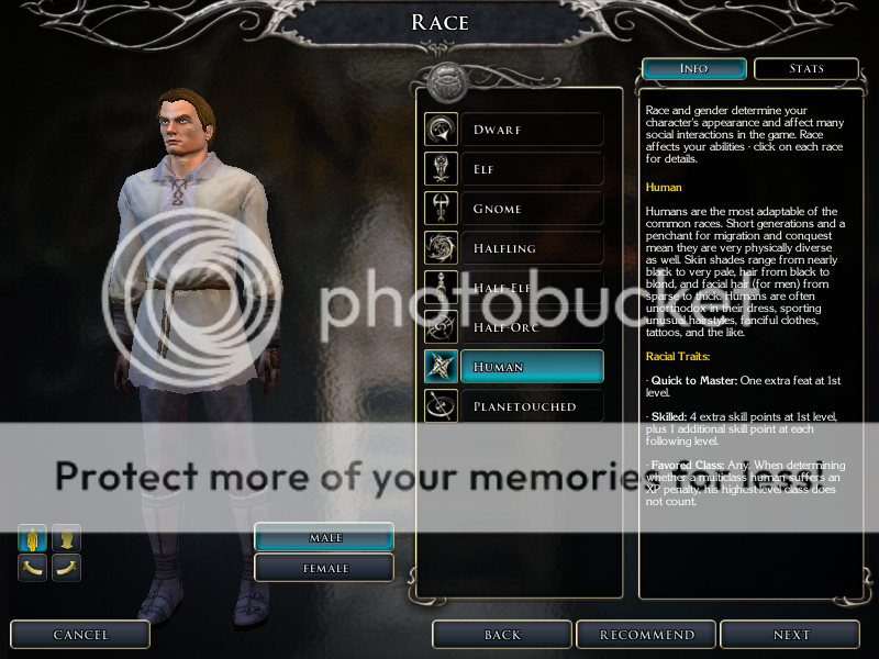 So, before the game has even begun, you can see what an incredible emphasis NWN2 places on character development.  Before your character has even had any adventures, this method of character creation is detailed enough to already formulate the player's own ideas and personality for their character.