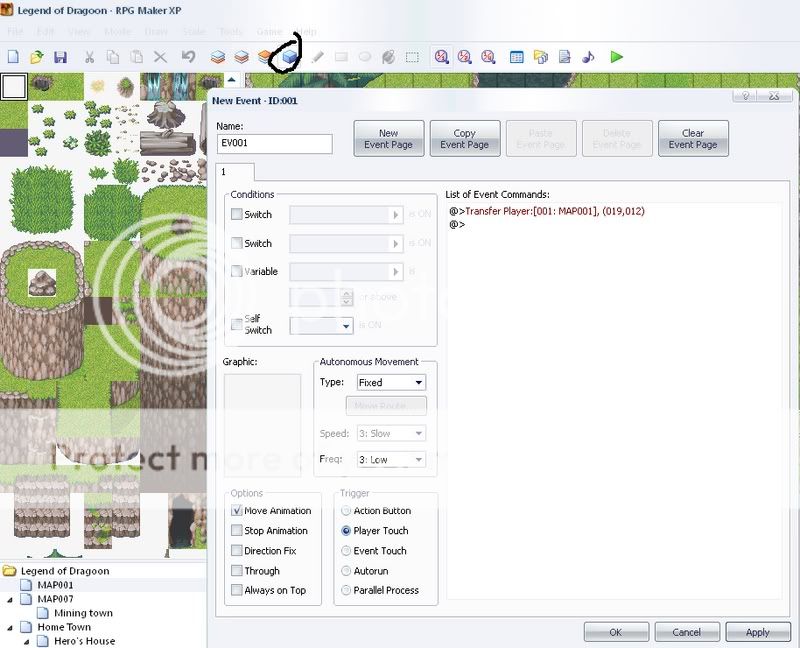 what is circled is the event layer, click that then on the map (where the teleport will start) right click with the mouse and click new event.